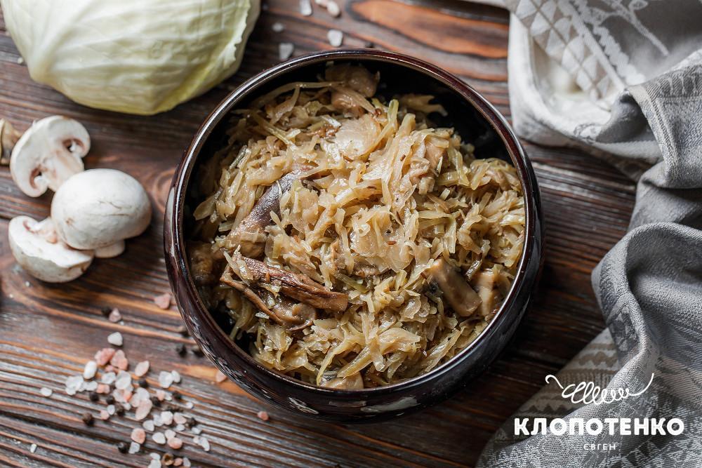 Рецепт: Капуста тушкована з грибами на UkrainianFood.com